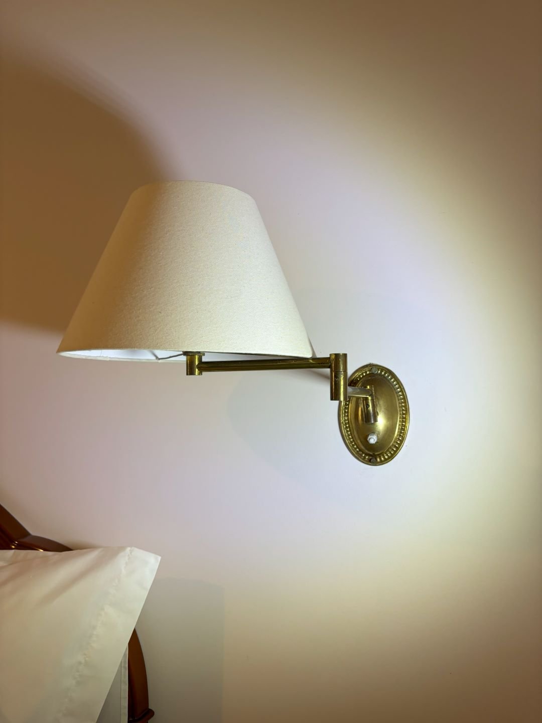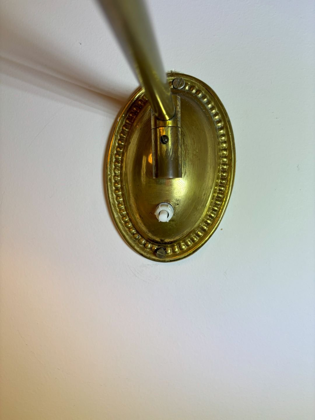 Lámpara de pared de bronce con brazo extensible e interruptor. Equipo versátil que se adapta a diferentes estilos de decoración. Disponibilidad de unidades de un y dos brazos, con y sin pantalla.