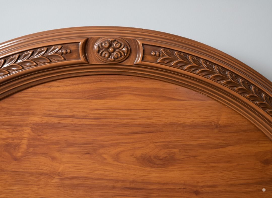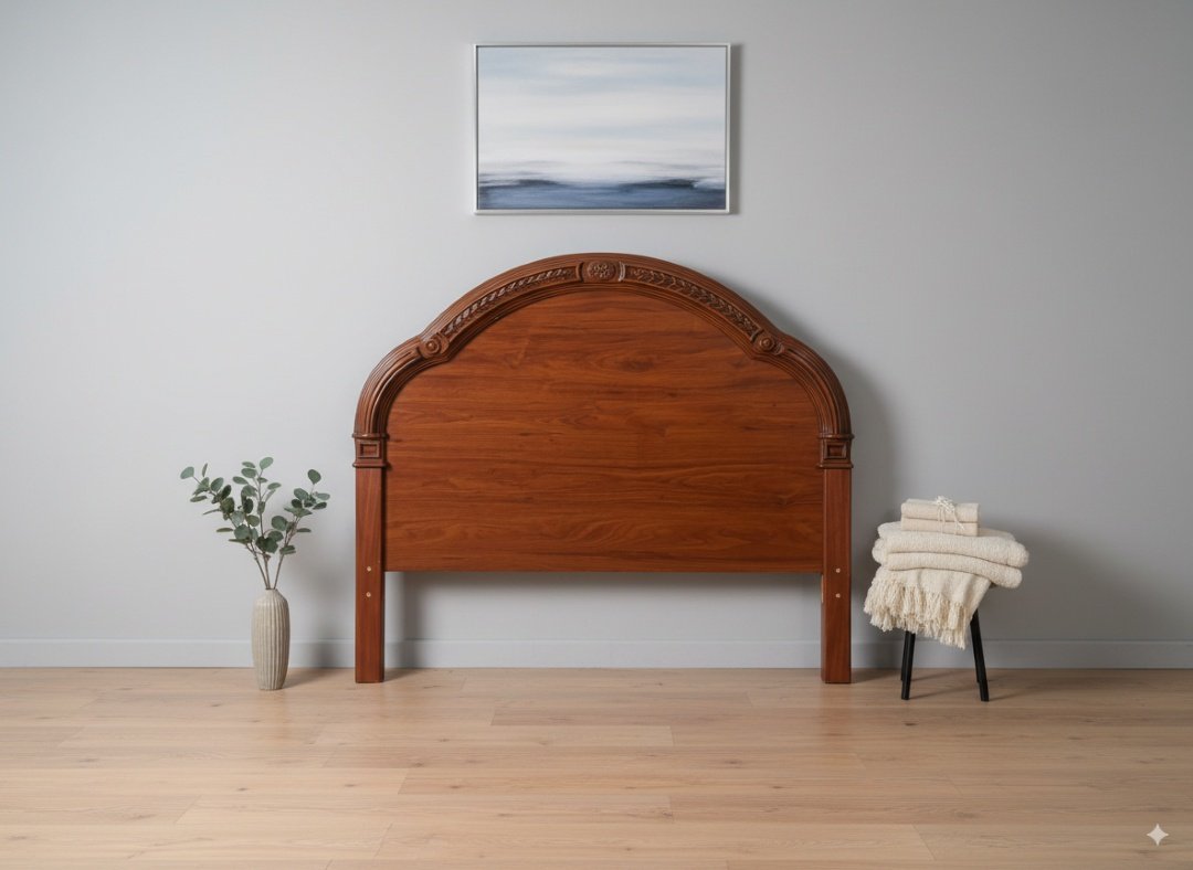 Respaldo de cama individual elaborado en madera con acabado brillante y un destacado marco tallado. Fabricado por Sierra Móveis.